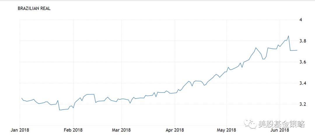从1美元兑雷亚尔的汇率来看,进入2018年,雷亚尔就一直呈现一个贬值的趋势。当然,过去我也说过,这个贬值无绝对好坏,关键看节奏还有看对经济,特别贸易的作用。在今年年初,全球经济还是被乐观看待的,而且看前面两三个月,你也看到雷亚尔的贬值节奏还算舒缓,适当贬值是有利于巴西这样的多种商品出口国的。但是接下来贸易战影响了大家对全球经济复苏节奏的信心,这对大宗商品出口国的巴西本身就是当头一棒,接着又是美元强势,雷亚尔贬值节奏马上加快。而同时,巴西调低了本国GDP增长预期,国内政坛又起了乱子,在这样的节点上这些破事儿一起来,自然在近两周引爆。