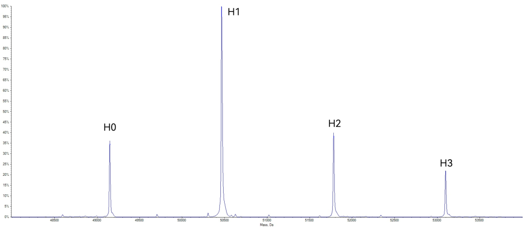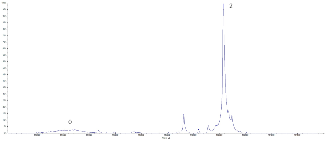图8 糖定点偶联ADC分子完整分子量分布图