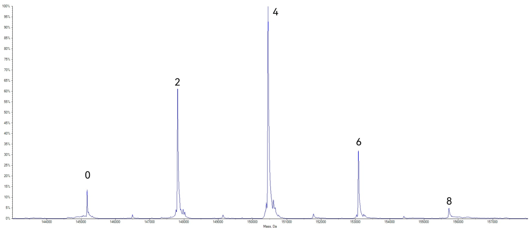 图7 半胱氨酸偶联ADC分子完整分子量分布图