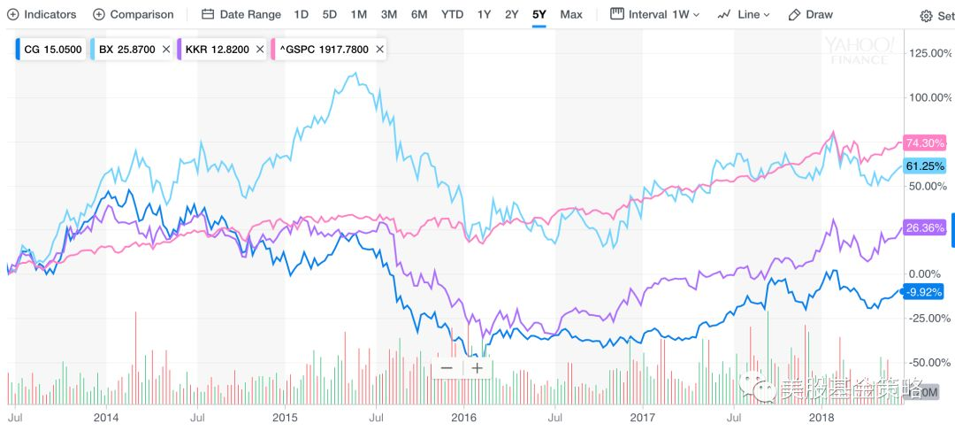 其实,从过去5年的股价走势来看,黑石表现还算不错,在2015年一度暴涨,整体距离标普500指数也差距不大。倒是同期的KKR和凯雷表现一般,特别凯雷很疲软。