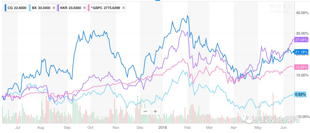 但是最近一年,轮到黑石疲软,KKR和凯雷走强了,而近期的并购活跃,它们当然有望获得更大收益,所以阶段性来看,表现还是值得期待的。但是在波动的市场,这一对外部环境敏感的行业,波动也会增大,投资者也需要掂量。