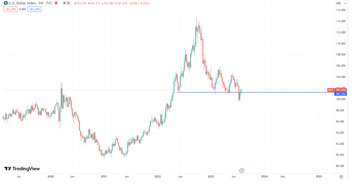 美联储本月的加息结果并没有出现任何意外,主席鲍威尔还给出了9月可能继续加息的可能性。消息引发了市场的短期波动,不过至收盘美元多头卷土重来,帮助美元指数在周线级别上重回此前跌破口之上。对于判断整个市场三季度的走向,美元能否筑底重新走强较为关键。