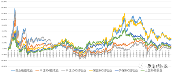 选这几个指数的理由有两个,一是风格差异大,指数存续的时间足够长,且都已经有ETF品种;二是这几个指数目前都有对应的期权衍生品。