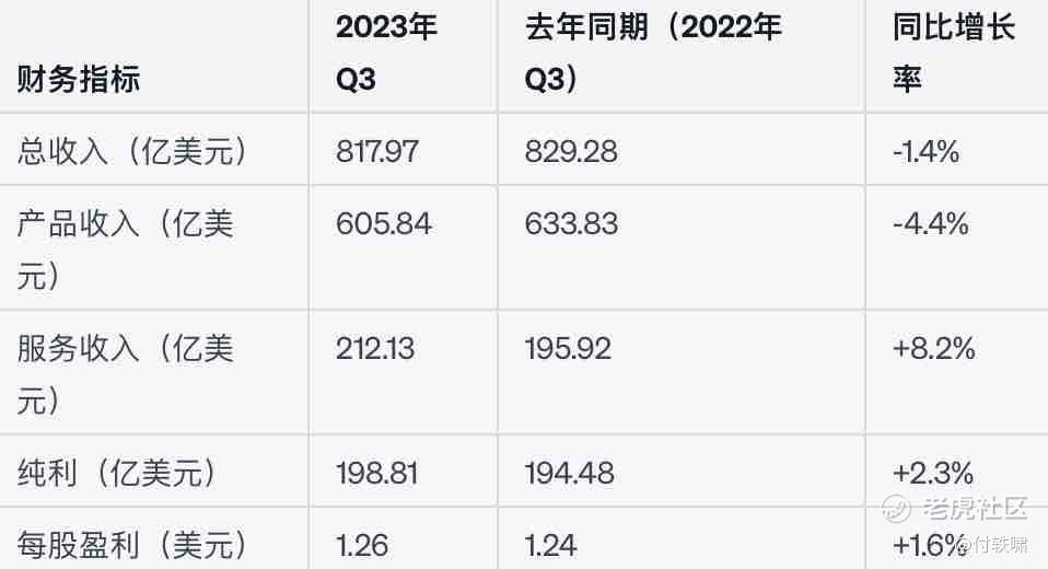 苹果公司 2023 年财年第三季度的业绩表现。尽管产品收入出现下跌,但服务收入的增长帮助公司在税项减少之下仍然录得了 2.3% 的增长,并超出了预期的每股盈利。本文将深入探讨公司业绩的主要影响因素以及未来的发展前景。