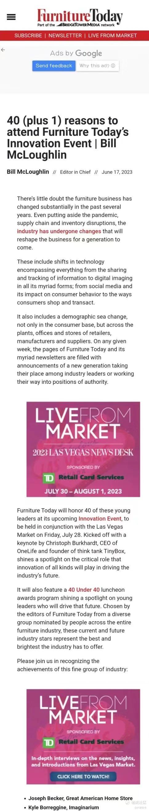 (https://www.furnituretoday.com/opinion/furniture-everyday/40-plus-1-reasons-to-attend-furniture-todays-innovation-event-bill-mcloughlin/)
