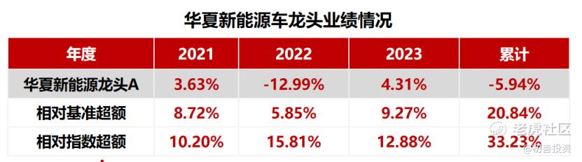 华夏新能源车龙头自2021年9月15日成立,截至2023年6月30日,区间A股处于调整周期,中证新能源车指数下跌39.2%,在此市场环境下,产品通过深度研究精选个股,区间仅下跌5.94%, 相对于指数超额收益达33.23%。其中,2021年度相对指数超额收益为10.20%,2022年度为15.81%,2023年(截至2023.6.30)为12.88%,持续期内所有自然年度均获得正向超额收益。