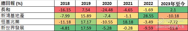 表1、长和总回报率是正数,其他三大家族仍在浮沉
