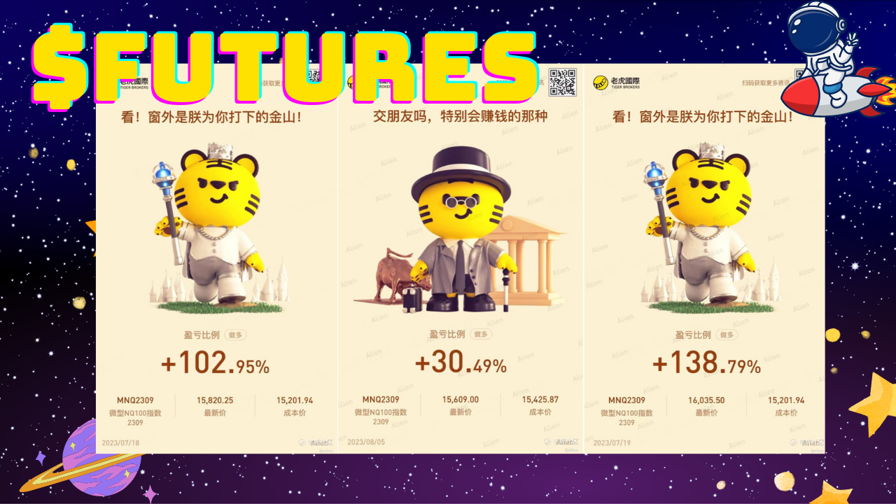 期货交易允许交易者用较少的资本控制更大的标的资产价值。以虎友@Alien 的 $微型NQ100指数2309(MNQ2309)$ 晒单来看,@Alien 1手期货的保证金为760美元(以目前的保证金760美元来算,保证金也是根据券商对环境的判断而会变化的),而他在判断对方向后净赚 (16035-15201)/0.25*0.5≈1668美元。
