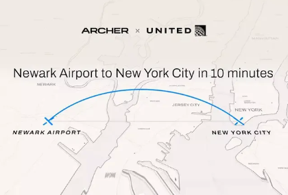 届时,可以搭乘四人的电动飞行出租车将定期往返于美国联合航空公司位于纽瓦克的机场和纽约市中心之间。