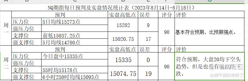 一、昨日预判及评价(见图表)(发现一个现象:一般情况下,当股指上升趋势时,我的预测准确率高误差小;当股指下跌趋势时,我的预测准确率低误差大。原因:上涨趋势时,市场预期一致情绪稳定,vix低位振荡或阴跌,市场基本按技术框架走:上涨-调整-再上涨-周而复始。下跌趋势时:市场看法分歧情绪剧烈波动,vix剧烈波动或大幅上涨,市场围绕技术框架波动较大。此现象个人命名为躺氏指标,指导个人的预判和操作。)
