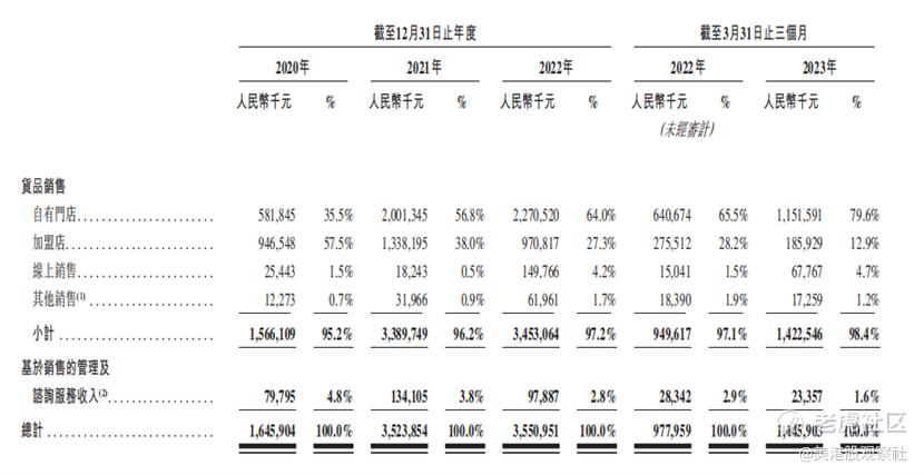 基于销售的管理及咨询服务收入:主要包括向加盟商提供管理及咨询服务所收取的基于销售额的服务费用。公司向加盟商提供包括商品供应、门店设计、运营支持、培训等在内的一系列服务,并根据加盟店的销售额收取一定比例的服务费用。