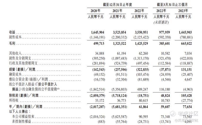 KK集团在过去的2020年、2021年、2022年和2023年前三个月,营业收入分别为人民币16.46亿、35.24亿、35.51亿和14.46亿元;相应的净利润分别为人民币-20.17亿、-56.81亿、0.62亿和0.78亿元;相应的经调整净利润分别为人民币-1.71亿、-3.04亿、-4.12亿和0.86亿元。因金融负债相关的波动较大,公司经调整净利润的参考价值更大。