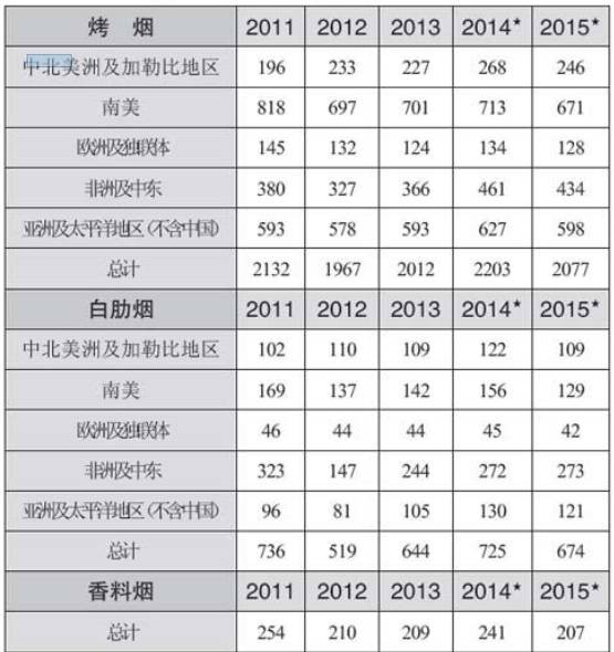 图4:全球烟叶产量(环球烟草公司2015年2月3日发布)