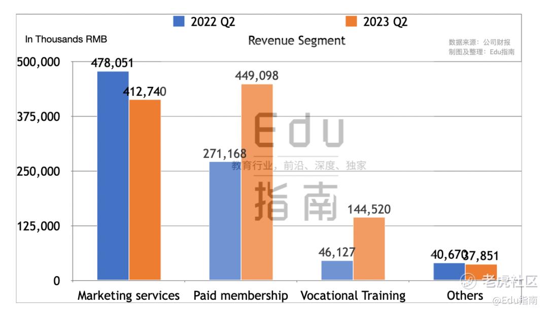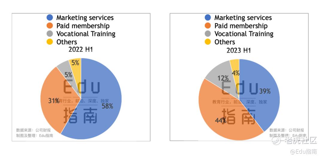 上半年付费会员收入占比最高;职业培训增长最快;营销服务同比下降