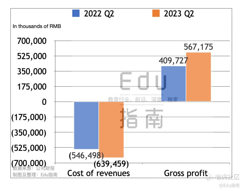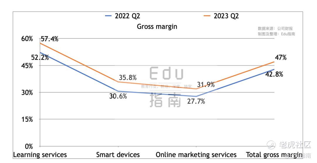 根据财报,该公司二季度整体毛利率为47%。其中学习服务毛利率为57%,高于上一财年Q2的52%。根据季报,该业务毛利率增长是因为其学习服务收入增长、规模经济效益提升等。