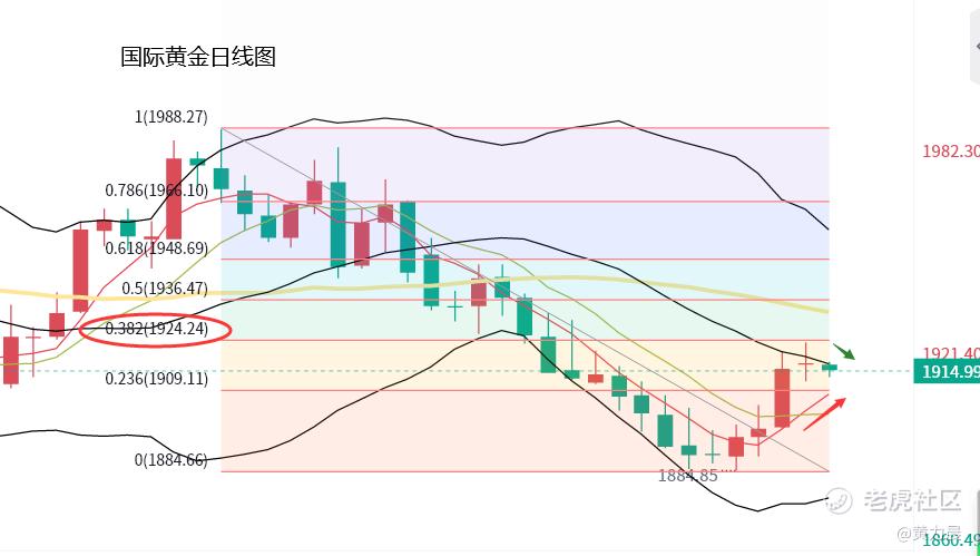 昨日周四我们提醒大家,警惕金价短线遇阻调整的可能性,操作上则倾向震荡,建议上方等待1925到1930美元做空,下方等待1915到1910美元做多,从之后的黄金走势来看,金价在1923美元遇阻后,逐渐承压走低,美盘盘中跌至1911美元企稳反弹,接着再次触及1923美元遇阻回落,周五开盘后,金价继续承压,跌至1912美元企稳,目前暂时交投于1914美元附近,黄金遇阻震荡调整,基本符合我们的预期。