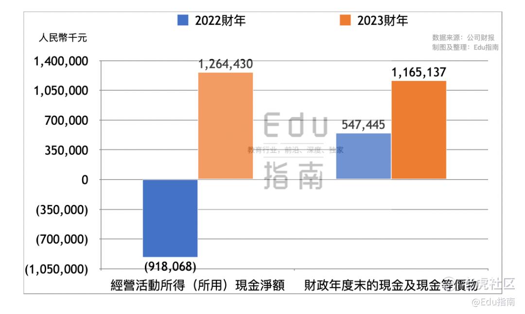 2023财年东方甄选经营活动现金净流入额为12.6亿元,上一财年同期为净流出9.2亿元,本财年经营活动现金由净流出转为净流入。截至本财年末该公司现金及现金等价物资产额为11.7亿元,同比上一财年同期的5.5亿元,该项增幅为113%。