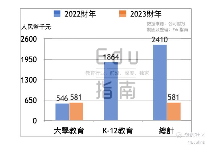 本财年来自大学教育的营收为5.9亿元,同比上一财年同期的5.2亿元,本财年该营收增长14%。该公司本财年付费学生人次主要来自大学教育,为58.1万,同比上一财年的54.6万,该项增长6%。根据财报,该公司大学教育业务提供国内大学备考、海外备考课程,本财年该公司得益于疫情后时期用户需求增加等,其海外备考营收、招生、盈利能力等“超过历史最高水平”。