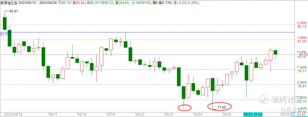 再以原油的走势为例,我是不是非常明确的和你们讲,WTI原油在77-78美元/桶区域出现明确的做多信号?之前是小时级别做了一波双底走势,而这一次的级别则变成了4小时级别。