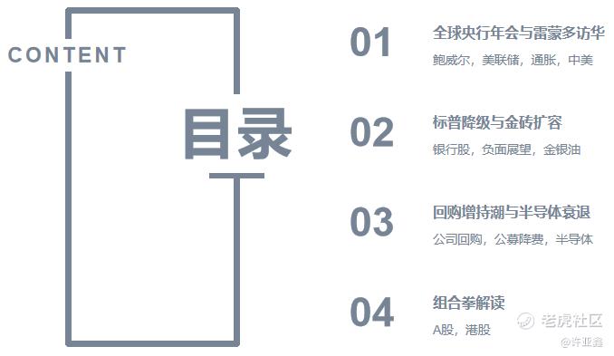 刚刚,我进行了8月份最后一节实战点评,分别从“全球央行年会与雷蒙多访华”,“标普降级与金砖扩容”,“回购增持潮与半导体衰退”和“组合拳解读”四个方面解读了基本面的一些信息,并结合鲍威尔,美联储,通胀,中美,银行股,负面展望,金银油,公司回购,公募降费,半导体,A股,港股等给出了接下来的布局思路。
