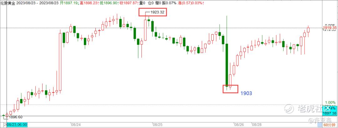 “全球央行杰克逊霍尔年会之前,多头有望进一步把价格拉升至1915,甚至是1920一线,然后伴随着美联储主席鲍威尔潜在的“鹰派”置评,会让黄金回踩1900一线,这也是这波多头行情发动之前的次低点,甚至可能是未来上涨行情的最后上车机会。”