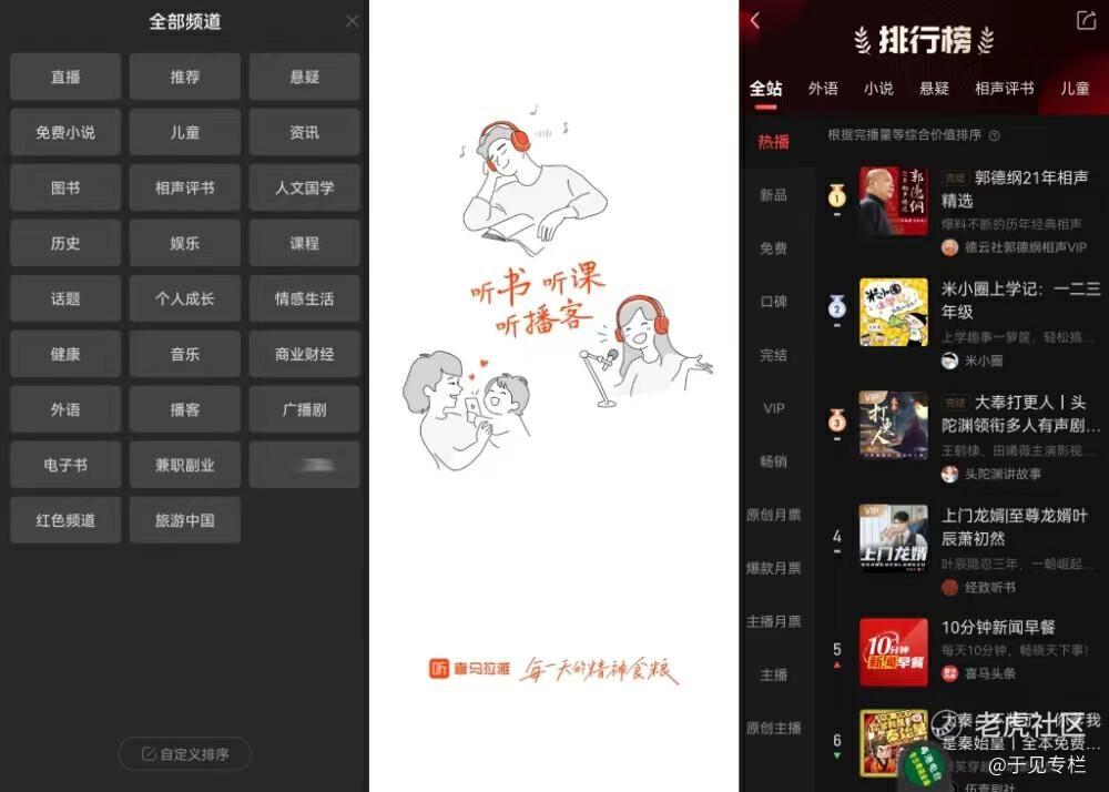 随着时代的变迁,人们的娱乐方式也在不断改变。过去,人们爱听评书,一个台子,一张桌子即刻开讲,凭票入场就能让耳朵享受一次盛筵。紧接着,去电影院看电影成为时髦的娱乐方式。后来,互联网给人们开了一扇五光十色的窗,短视频、电子书、在线音乐、在线音频……新的娱乐方式层出不穷,互联网再造了人们下班后的娱乐生活。借此潮流兴起的在线音频分享平台喜马拉雅就是互联网中不可忽视的一朵浪花。