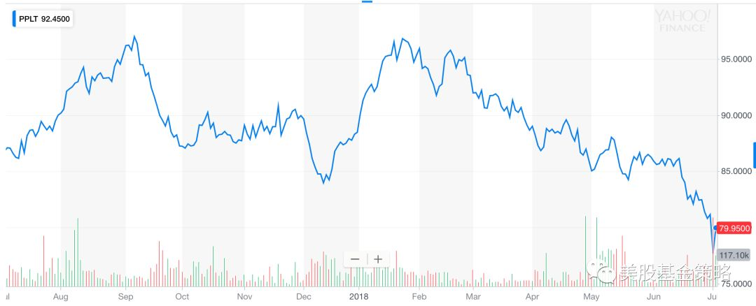 美国市场挂牌的铂金ETF为PPLT,其近一年走势节奏上也基本上跟随了期货走势,特别进入5月后交易量也有所提升,体现的也是这种忧虑。