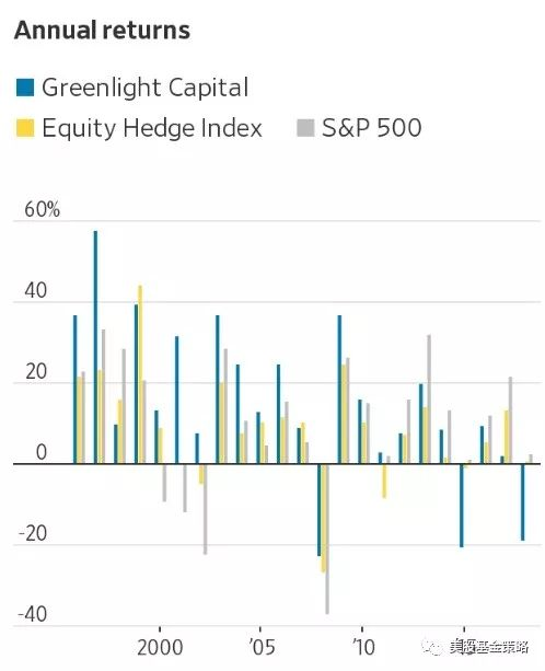 是的,就是这么“反指”,做空的暴涨,做多的暴跌,所以其当年业绩分外扎眼。自从2014年底到2017年底,绿光资本累积收益为-11.3%,而标普500指数为38.3%,对冲基金指数为18.3%。进入2018年,埃因霍恩的麻烦似乎更大,绿光资本六月份就跌了7.7%,而今年以来跌幅已达18.7%,同期标普500指数涨了2.65%,对冲基金指数涨了1%。