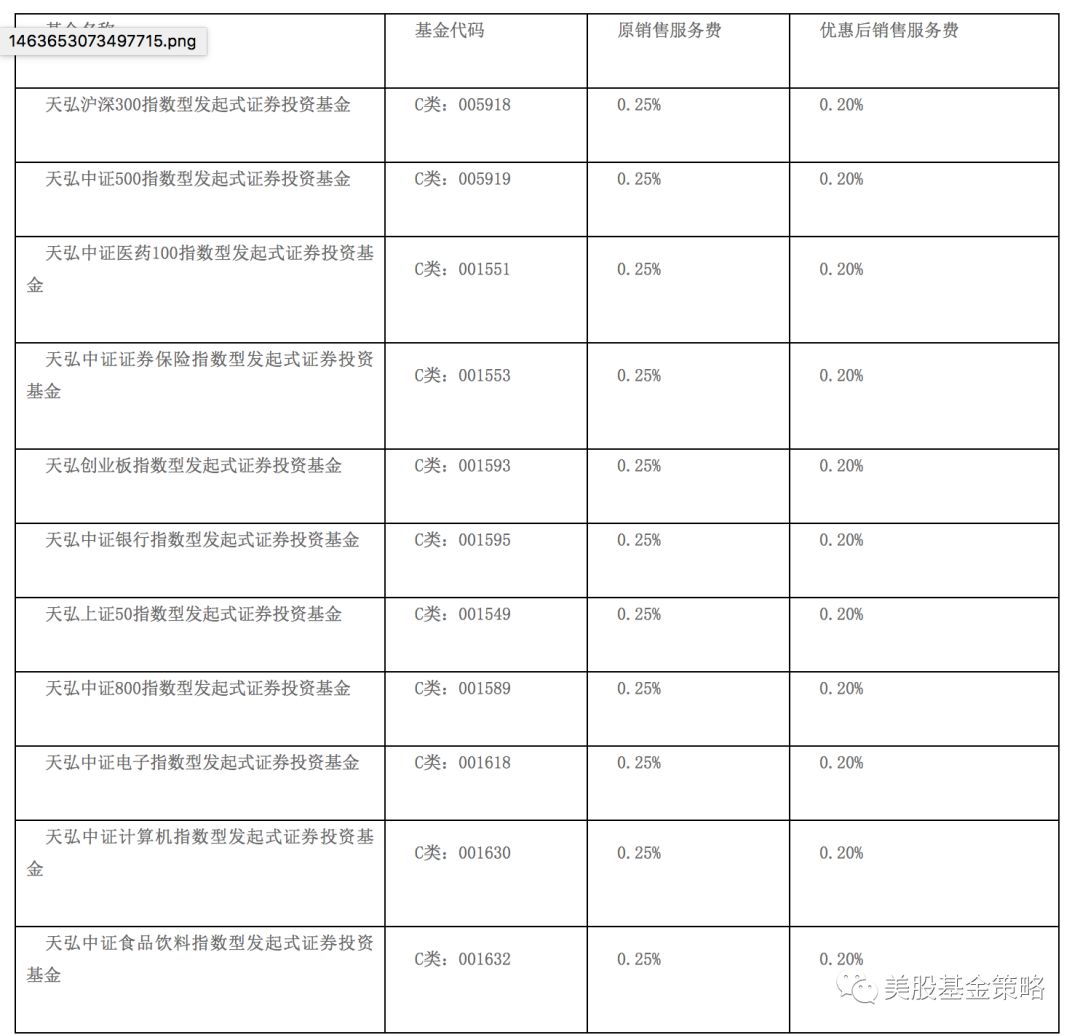 其实主要就是把其旗下的一系列指数基金的“销售服务费率”普遍从0.25%下调到0.20%,其意义就是基金持有成本降低了。这里一个值得注意的现象是,这次调整的基金类型都是C类,什么意思?