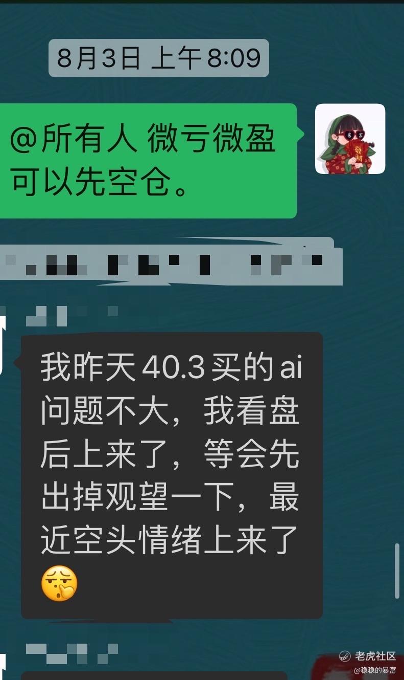 8月2日,预感不好,3日盘前让大家全部空仓。