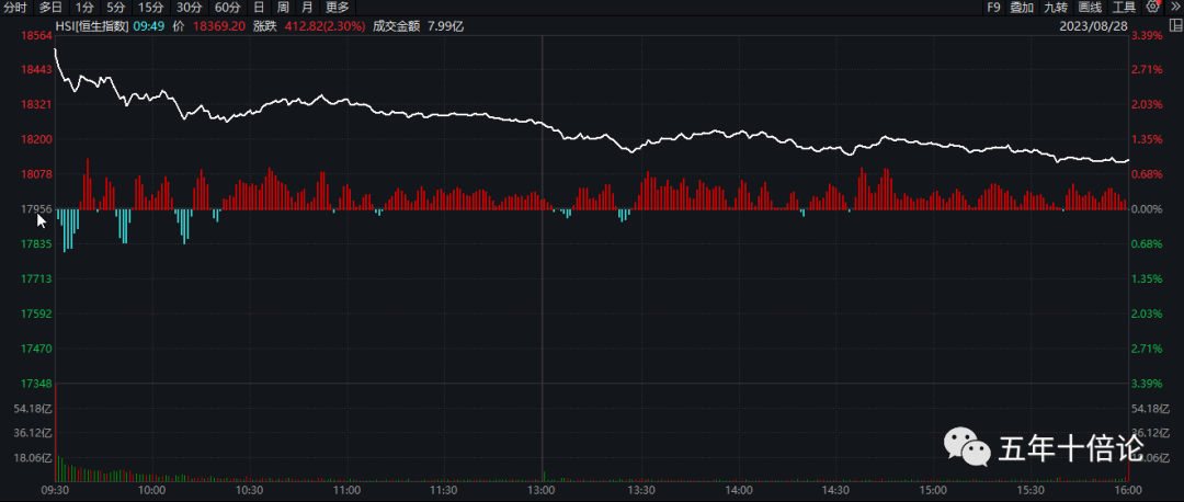 在内地4大政策的刺激下,恒生指数开盘高开+3%,后续行情一路向下,收盘只有0.97%,成交量放大近8倍,类似的情况出现在A股的上证指数、沪深300等指数上。