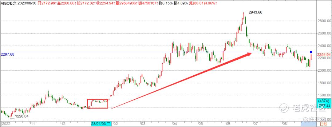 目前的AIGC技术应用发展得非常快,并且随着技术的落地,也诞生出来很多优秀的企业,甚至有一些都已经在科创板挂牌。我复盘看了一下AIGC概念的日线走势图如下: