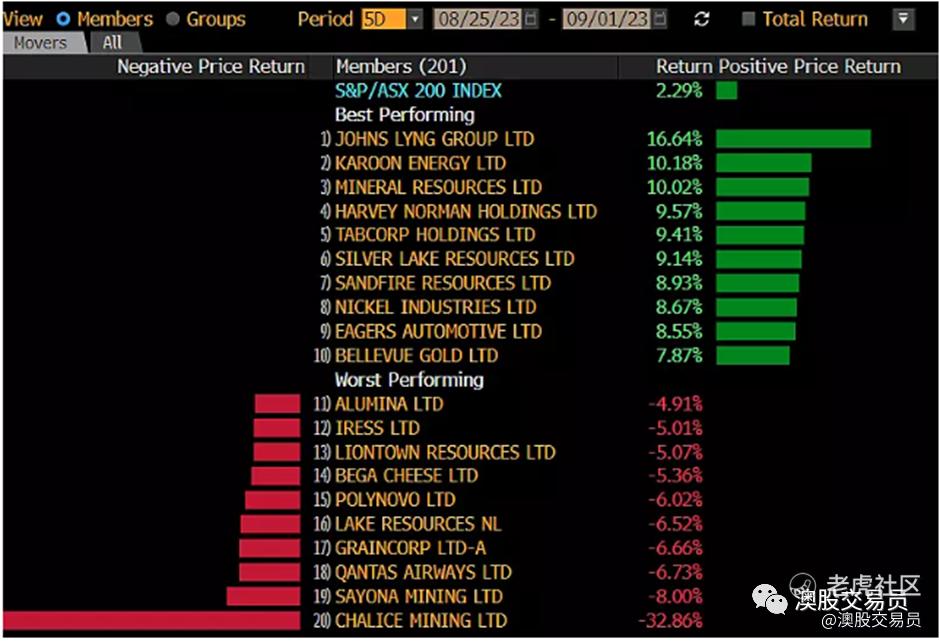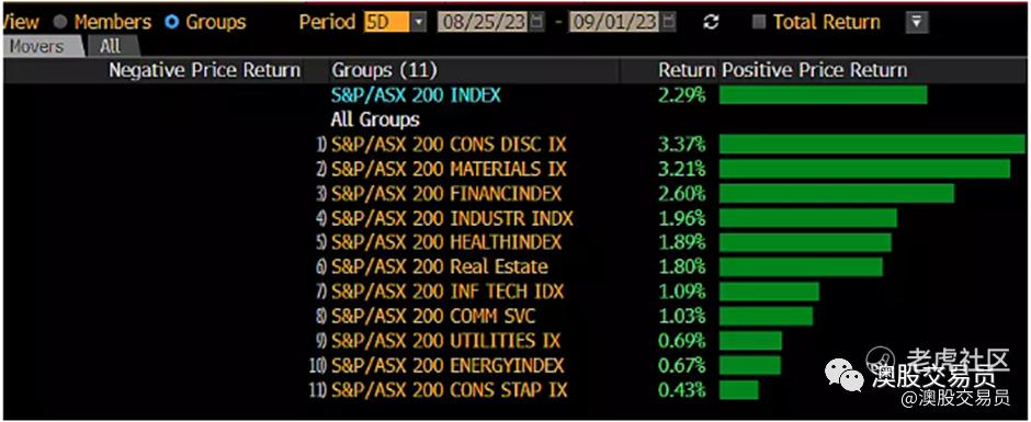 本周表现最好的板块和ASX200成分股如下: