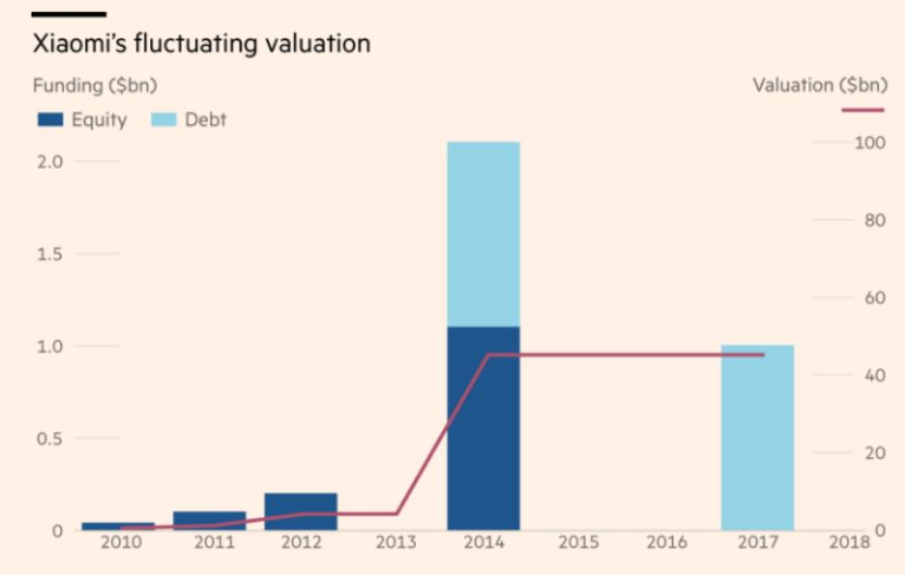 2014年12月,小米完成上市前的最后一轮融资时估值为450亿美元。经过此后数年间市场风云变幻,小米的估值也经历了由乐观到务实的转变。
