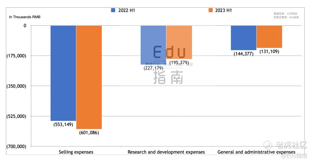 其中上半年高途公司销售费用为6.0亿元,同比上一财年同期的5.5亿元,该费用增幅为9%。本期销售费用占上半年收入比例为43%。