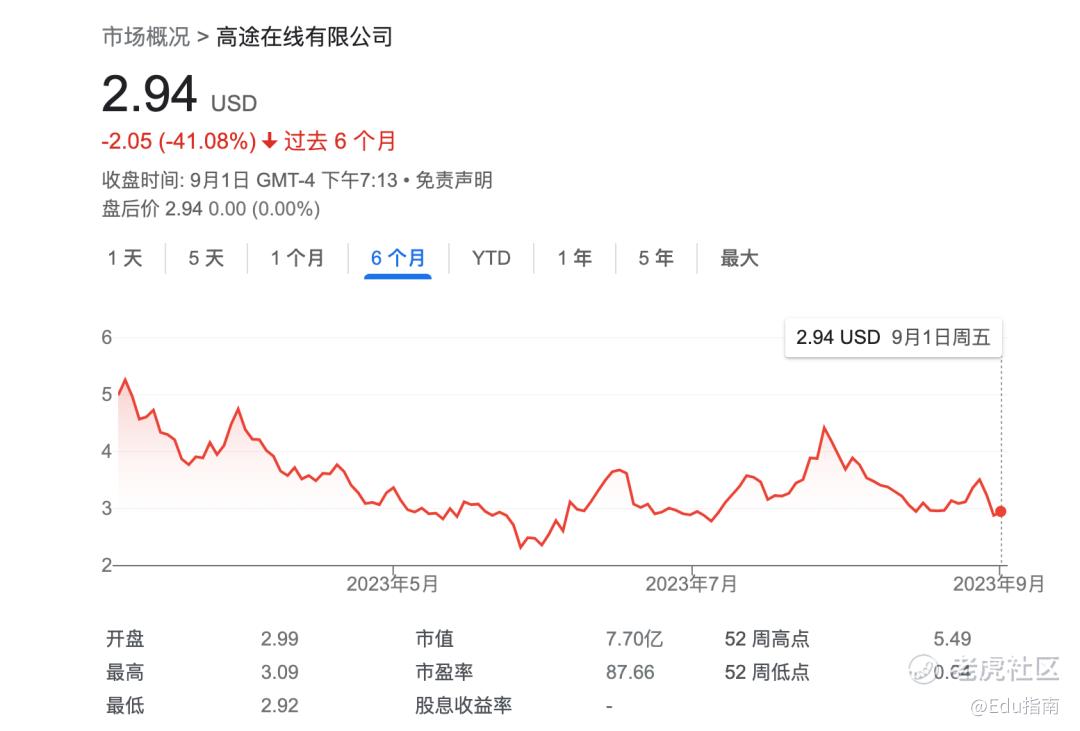 截至本文,高途公司过去六个月股价下跌41%,当前市值为7.7亿美元。