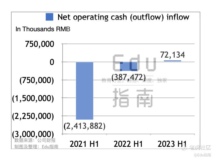 根据财报,高途公司上半年经营现金净流入7213万元,上一财年同期净流出3.9亿元,本期该项由净流出转为净流入。该公司2021财年同期经营现金净流出为24亿元,本期相较同样表现为显著改善。