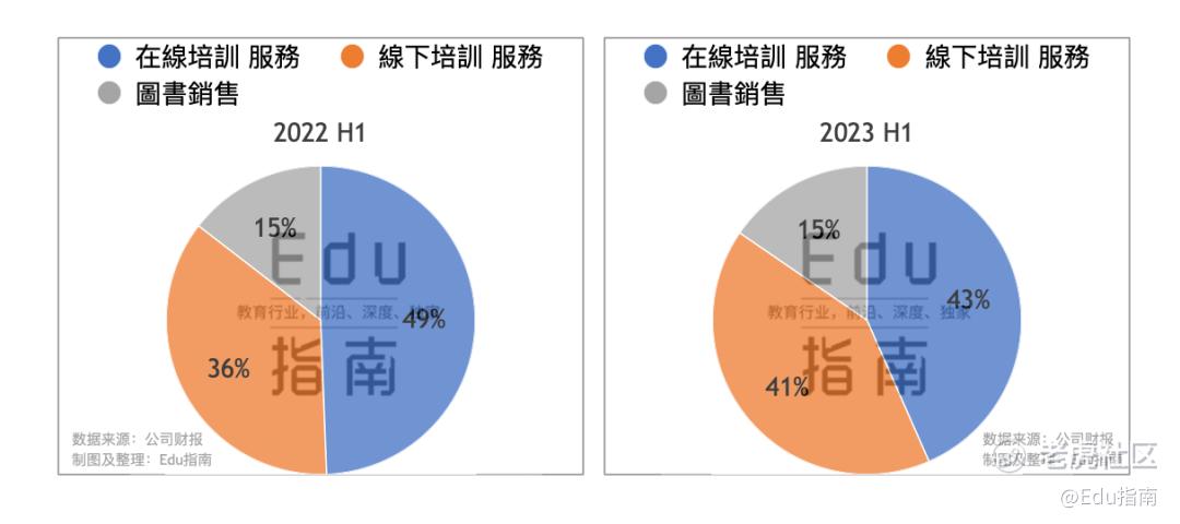 上半年线下培训收入占比提升,在线服务占比有所下降