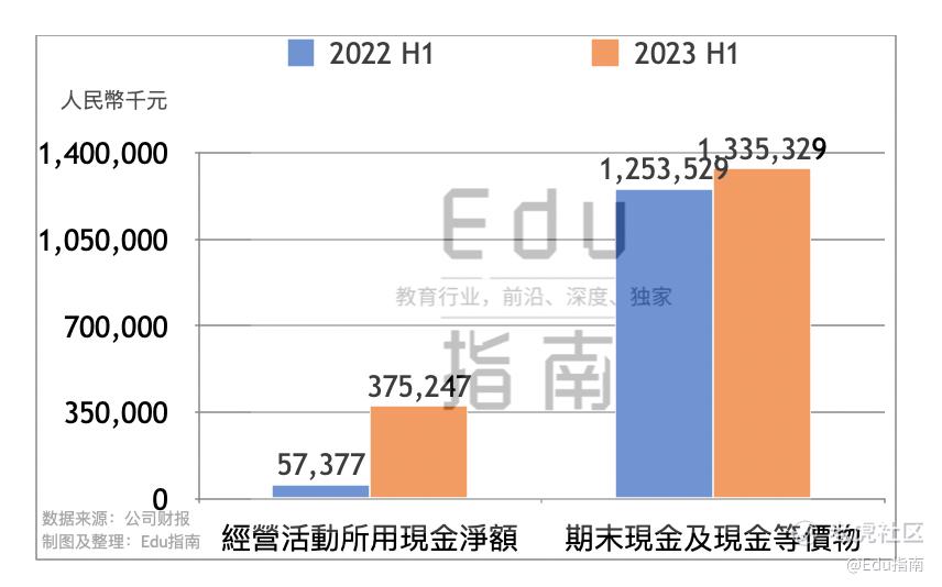 上半年粉笔公司经营活动现金净流入额为3.8亿元,上一财年同期净流入5738万元,本期该项现金净流入显著增长。截至本期业绩报告,该公司期末现金及现金等价物额为13.3亿元,上一财年同期为12.5亿元,本期该项资产额增幅为7%。
