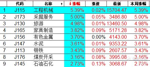 今天A股三大指数今日集体反弹,沪指收高1.4%,深成收高1.41%,创业收高0.85%。盘面上来看,工程机械涨幅第一,而油气、煤炭、钢铁等周期股全线拉升,与地产相关的家装建材板块走势活跃,此外,华为的产业链也在持续炒作。