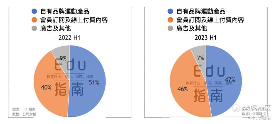 会员订阅及线上付费内容上半年收入占比为46%,高于上一财年同期占比的40%。
