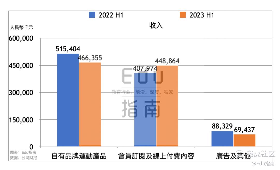 上半年自有品牌运动产品收入同比下降;会员订阅及线上付费内容收入增长