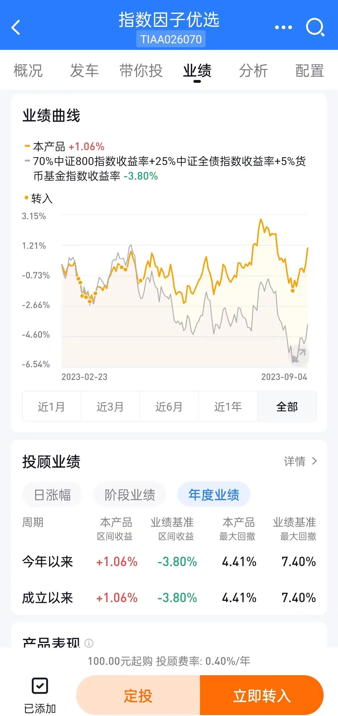 场外基金组合(仓位一成):