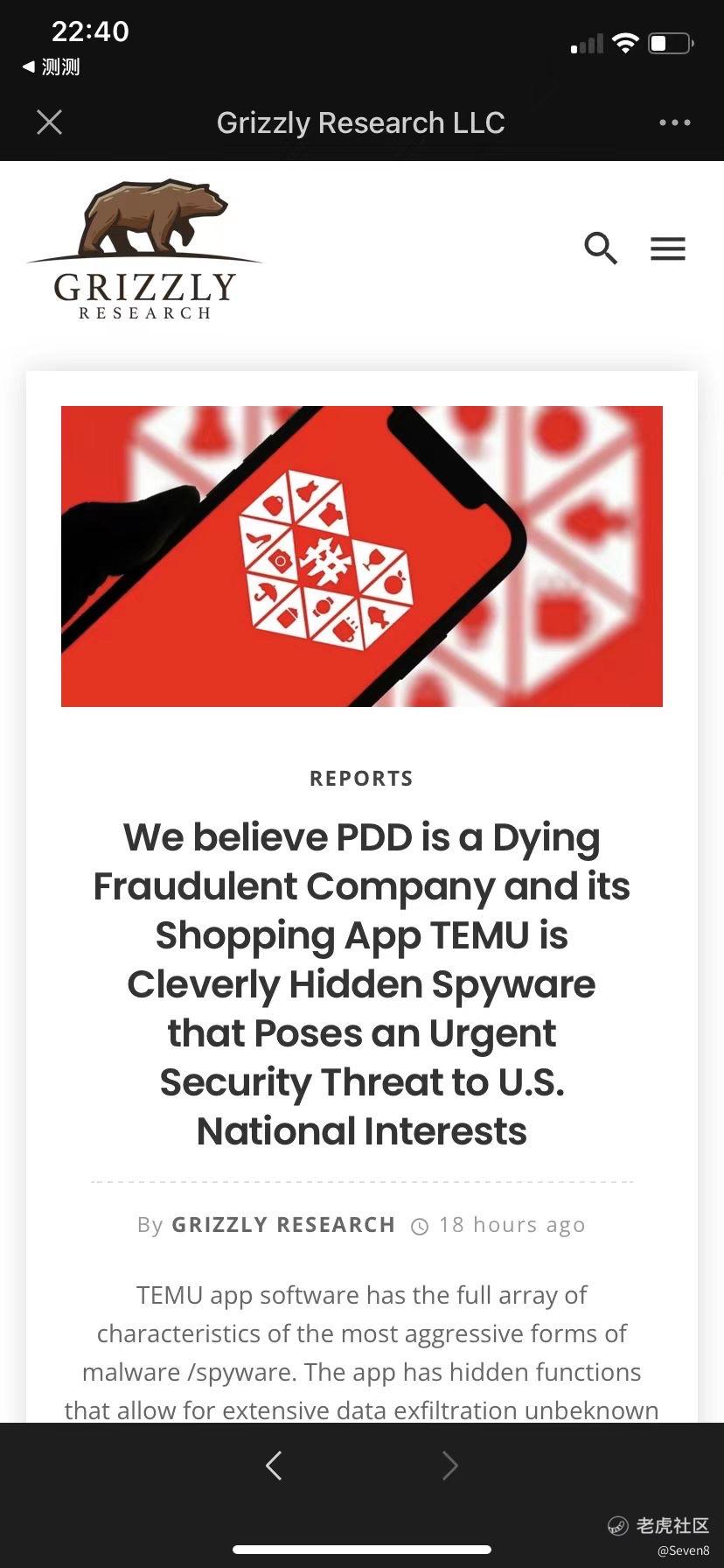 下午做空机构grizzly 说要发一个大新闻,大家都猜是