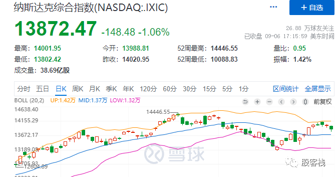 纳斯达克从技术形态上来说,已经走的比较难看了,无论是MACD还是BOLL,都没什么在这个点位加仓的理由,如果你真的在做TQQQ的期权的话,谨慎在这个点位随便去SELL PUT