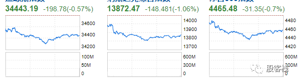 三大股市都是低开后慢慢收付,不过美股跌的稍微惨一点。