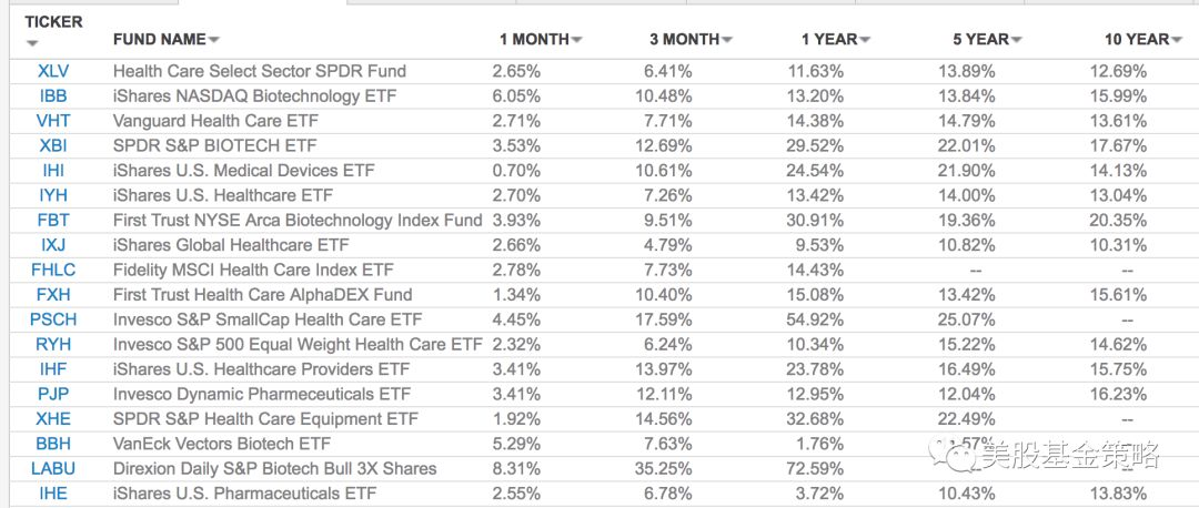 而从更大的范围看,美国医疗保健板块规模较大的几只ETF,从长期年化收益率来看,你会发现都在10%以上,都能够给投资者带来不错的收益。如果你特别看好医疗板块的长期投资,其实也可以考虑从中结合比如传统药业+生物医药;医药+医疗设备;医药大盘股+医药小盘股等小规模的组合让你的医疗板块投资更具有弹性。