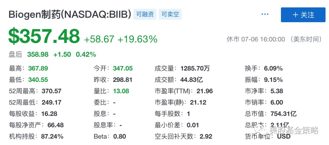 不过,从投资角度,医药板块,在美国特别是生物医药板块依然是值得长期投资的标的。别看大家常常把药厂骂成孙子,但是也都指望着他们,因为没有他们的突破,我们也无药可仿。$(BIIB)$