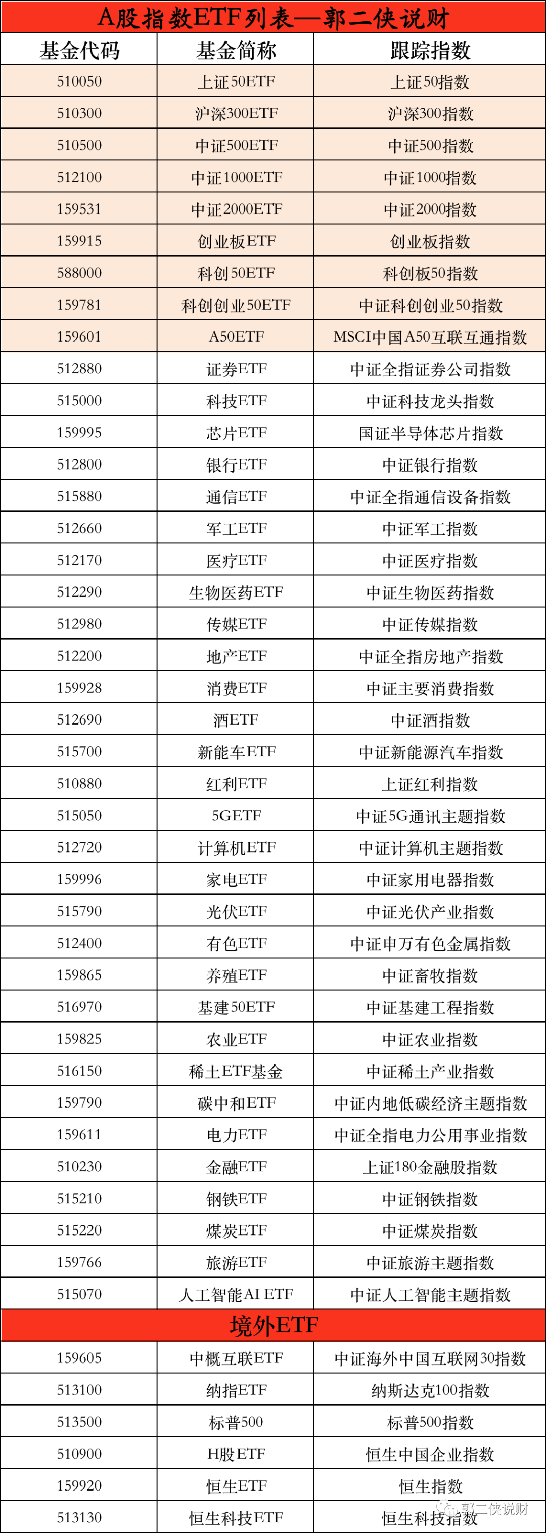 贴一张最新的指数ETF列表。