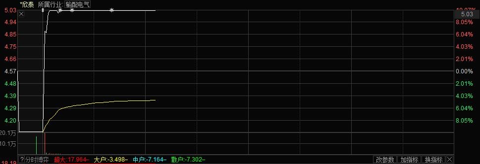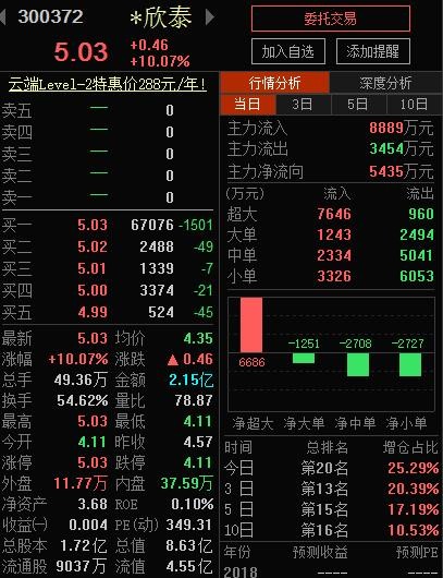 最后再来看看今天的跌停价——4.11元,今天的涨停价——5.03元。